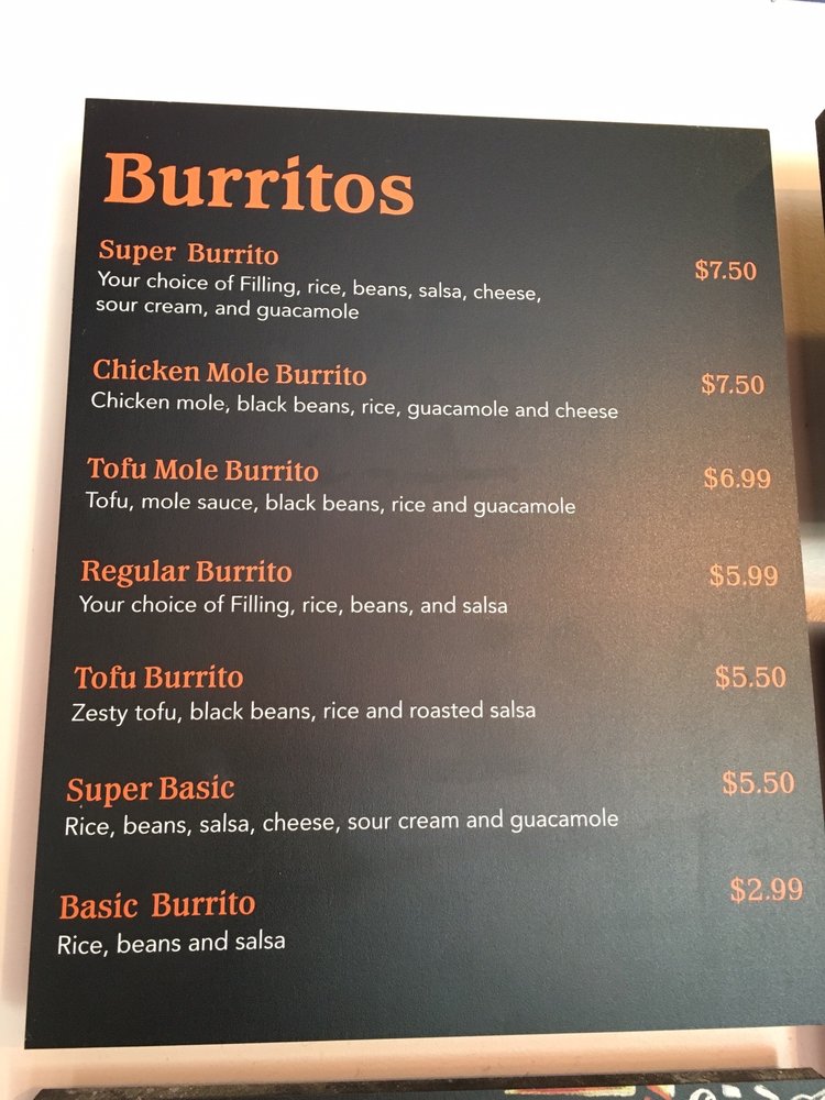 you choose the filling, with rice, pintos, cheese, sour cream, salsa fresca and guacamole inside, wrapped in foil and with slaw and escabeche on the side